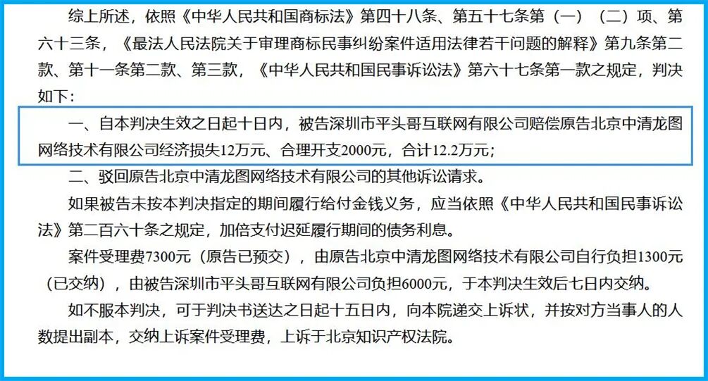 近日北京市海淀区人民法院公布了一起商标侵权的一审民事判决书,判决书显示,中清龙图因“热血江湖”商标被深圳市平头哥互联网公司侵权,起诉平头哥公司索赔40万。