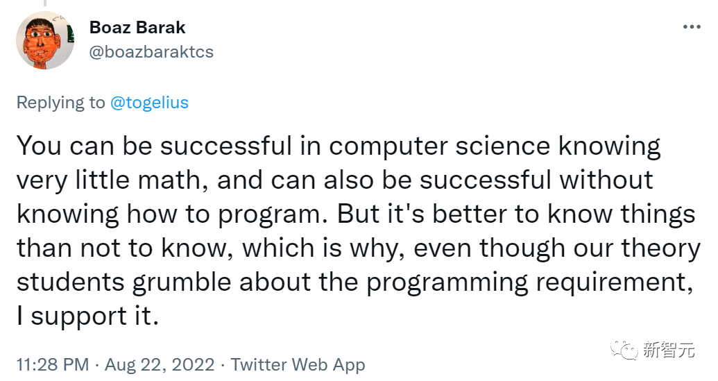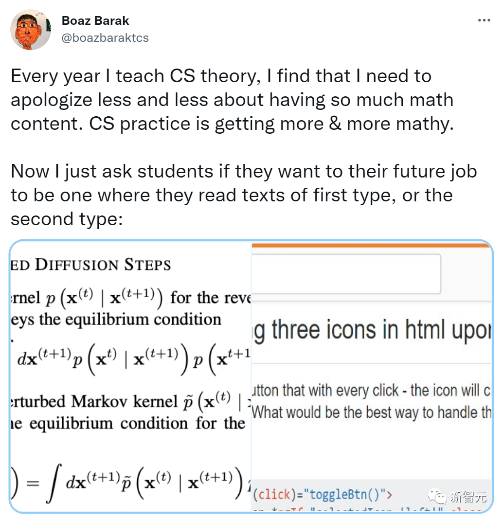 哈佛大学的Boaz Barak教授在Twitter上发文说:「每年我教CS理论时,我发现越来越不需要为有这么多数学内容而道歉了。」他表示,CS的实践正变得越来越数学化。