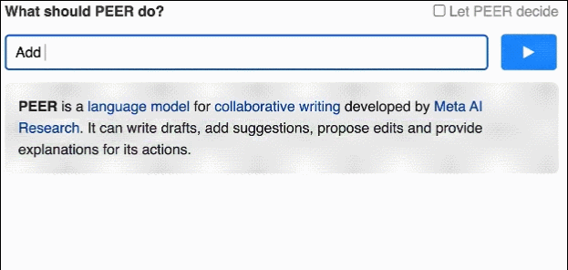 PEER解决了传统语言模型只会生成最终结果,并且生成文本无法控制的问题,通过输入自然语言命令,PEER可以对生成文本进行修改。