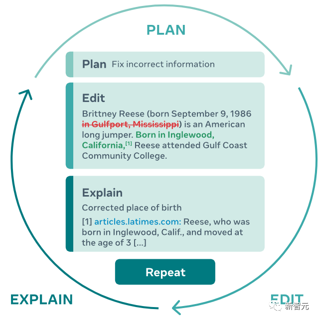 最近Meta AI Research和卡内基梅隆大学的研究人员提出一个新的文本生成模型PEER(计划Plan,编辑Edit,解释Explain,重复Repeat),完全模拟人类写作文的过程,从打草稿、征求建议到编辑文本,再不断迭代。