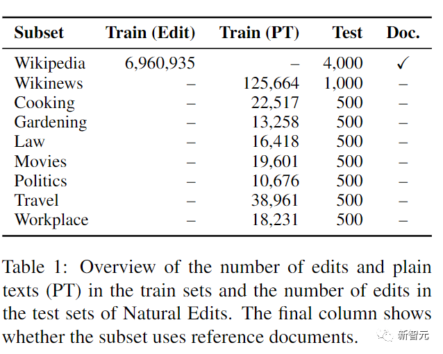 在Wikinews和StackExchange子集的训练中,只提供纯文本数据,而非实际的编辑,从而测试在没有编辑历史的领域的编辑能力。