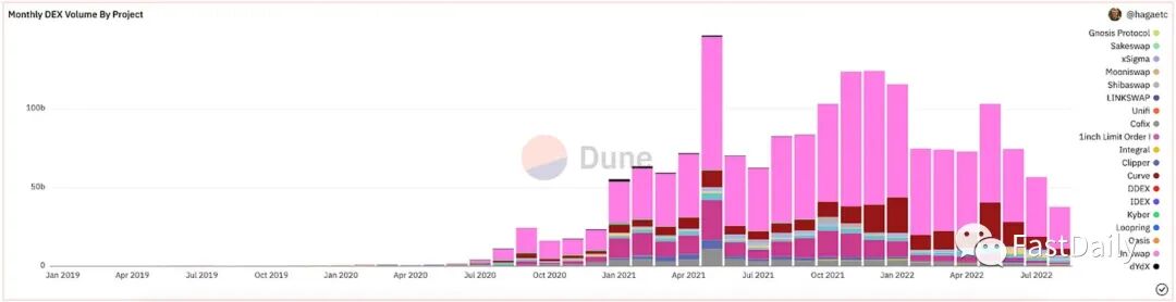 自Uniswap V3推出以来,他们已经拥有7000亿美元的交易量、90%的Uniswap交易和超过55亿美元的TVL(在2021年11月达到了100亿美元的峰值),并在DEX市场份额中占据了很大比重。