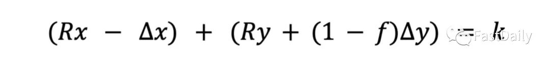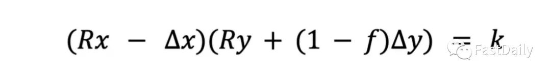 其中Rx和Ry为每个代币的储备,f为交易费用,k是一个常数。这看起来很熟悉。更简单的写法为: