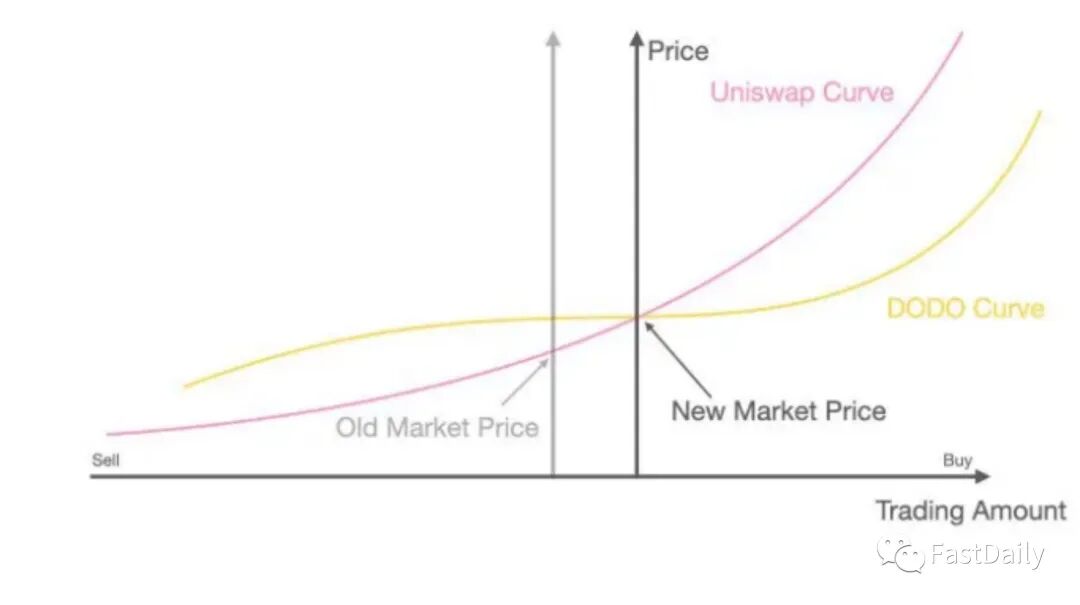 为了增加协议的流动性并提高资金利用率,DODO引入了主动做市商(PMM)。简而言之,PMM利用链上的oracle来收集准确的价格数据,并在当前市场价格附近聚集流动性。为了做到这一点,DODO主动地移动资产池的曲线,以确保有足够的流动性,并在整个市场价格上创建一个更平坦的曲线。随着曲线变平,流动性变得更广泛,用户将从较低的滑点中受益。DODO还实现了单边流动性,即一个交易对有两个独立的资金池(买入池和卖出池)。在某些方面,PMM是最接近传统做市商的模式。