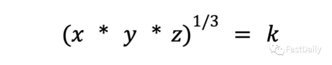 其中R为各项资产的储备,w为各项资产的权重,k为常数。在一个具有三种资产的同等流动性池中,等式可以简化如下: