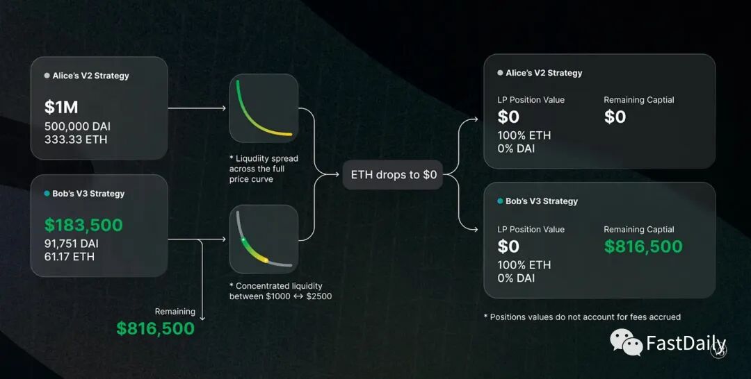 2021年3月,Uniswap宣布了其平台的第三次迭代Uniswap V3。其中他们引入了两大新功能:集中的流动性和多个收费层级。集中的流动性使LP可以对其资本配置的价格区间进行精细的控制,从而大大提高了资本效率,显著降低了滑点,同时也防止了任何资产自由下跌的情况。灵活的收费方式让LP有机会根据他们存入的货币对的预期波动性调整自己的保证金。