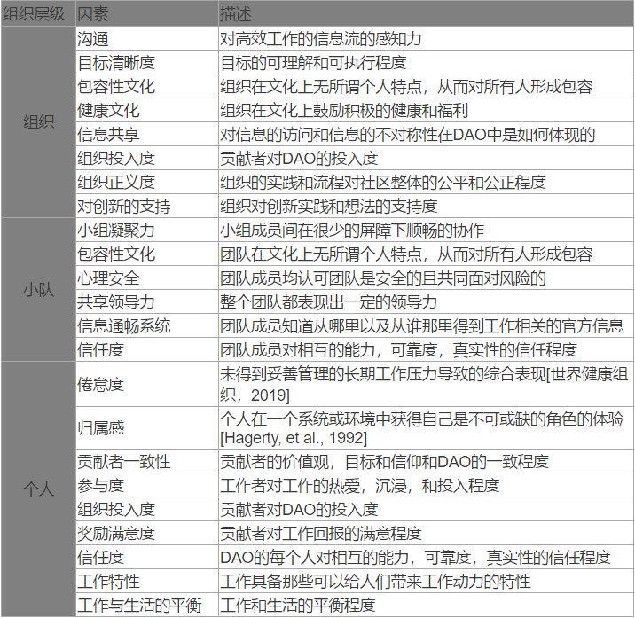 因此,我们认为从传统组织环境改编而来的心理测量学依然适用于 DAO 的环境,心理因素仍然存在,尽管结果和基线水平可能不同。