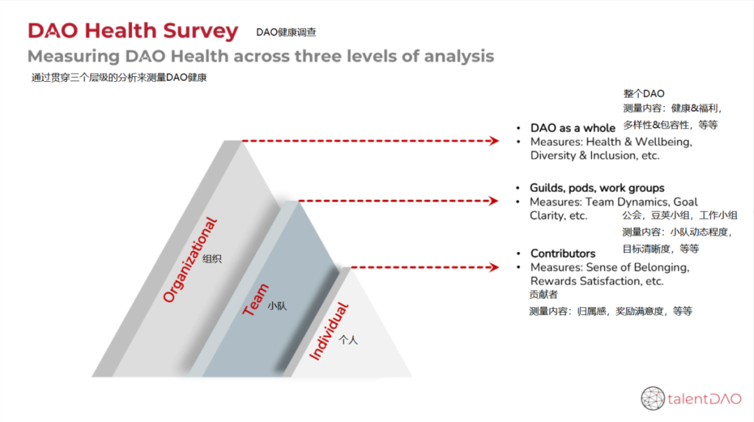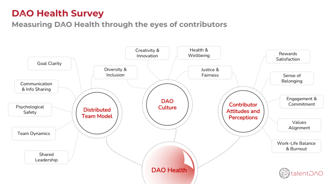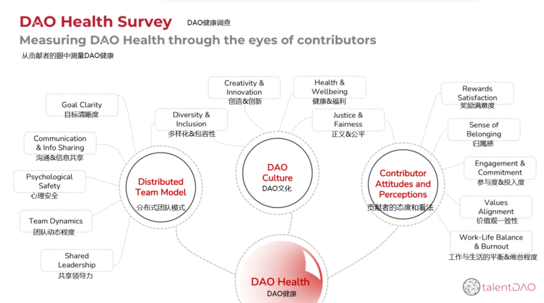 DAO Health Survey 是开源工具,可以在 Github 上找到。随着时间的推移, talentDAO 将进行多项研究以改进此测量工具,并将发布新版本。