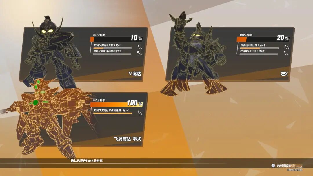 大体上,一些人气比较高的机体,需要两种或三种图纸,超过12张才能解锁。而通过一次关卡,往往只能获得一张对应的图纸——也就是说,解锁机体变成了一个纯粹靠刷的行为。在这样的机制下,像飞翼零式这种只需要一张图纸就能解锁的机体,简直是制作组的仁慈。
