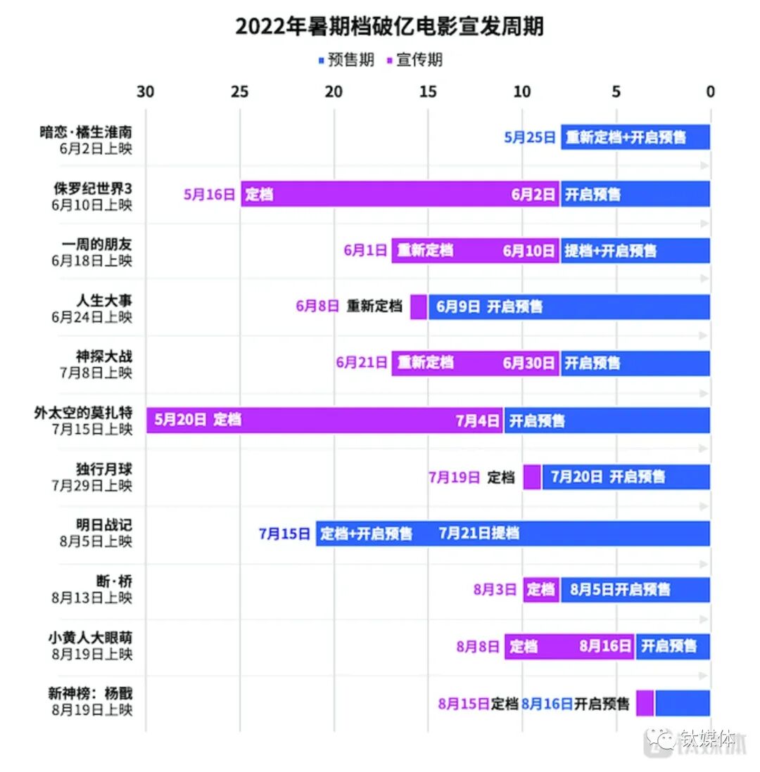 尽管今年暑期档呈现了回暖的态势,钛媒体APP发现,当前,全行业正面临一个新的严峻挑战是,“极限定档”成为院线电影的新常态。所谓“极限定档”,是当前留给片方和院线的映前宣发时间,正在急速缩短。钛媒体APP观察到,今年暑期档期间,《独行月球》提前10天定档,《小黄人大眼萌》则是11天,《明日战记》从定档到提档,只有2周的时间,《新神榜:杨戬》更为夸张,从定档到上映,只有4天。要知道,在以往,一般类似《独行月球》这类大体量的影片,多数会有拥有长达1-2个月的映前宣发周期。2022年暑期档破亿电影宣发周期,图片来自猫眼研究院《2022暑期档数据洞察》院线定档到上映时间被极限压缩,打乱了院线电影既定的宣发节奏。产业链条上相关的工作人员,在短短几天时间内,把电影拷贝硬盘寄到全国各地电影院,都略显仓促,更不用提还要做好预告、特辑、主题曲MV、片段、多组海报、首映礼、多城市路演、媒体采访等环节的工作了。对电影行业从业者而言,除了一如既往等待影片通过内容、技术的审查之外,现在,苦等档期的批准,然后拿到发行通知,再匆忙开展映前宣发工作,也变成了一种日常。猫眼娱乐前不久发布的2022年中期业绩公告显示,娱乐内容服务所得收益,由2021年上半年的6.6亿元,减少至2022年上半年的5.3亿元,减少的主要原因是,2022年上半年受到疫情影响,其参与出品、宣发的多部影片有所调整,或上映计划推迟。在电影营销上,宣发期缩短直接的影响是,影片在“建立观众认知度”和“培养观众兴趣度”两个关键维度上的工作。影片在未进行充分宣发的情况下,就到了公映期,会让观众的观影意愿难以被充分调动。以今年暑期档票房破亿的影片为例,猫眼研究院数据显示,《独行月球》《断·桥》《人生大事》等影片,定档后宣发积攒的“想看”数,不如定档或改档前累计的“想看”数高;而《小黄人大眼萌》《新神榜:杨戬》等影片,定档后“想看”日增较高,但最终映前“想看”也没能突破20万门槛。映前观影热情未能充分调动的后果,是观众观影的积极性下降,因而,2022年暑期档电影首日预售占比回升至29.0%,要低于过去几年。即便如此,当“极限定档”成为一种难以预期的不可抗力时,行业也在探索新的策略,以应对不确定性风险。“虽然映前宣发要想培养观众对影片的认知度以及兴趣会相对困难,但依然可以从映后宣发、口碑发酵的方向上进行突破。”猫眼研究院分析师刘振飞对钛媒体APP表示。在今年暑期档映后宣发上,钛媒体APP了解到的一个案例是,一开始,宣发期仅有10天的《独行月球》,多款重磅物料的连续发布后,也未能在“定档”高热事件后形成持续发酵,不过,在7月27日、7月28日连续两轮大规模点映的推动下,《独行月球》热度迅猛攀升,实现了有限时间内的极限宣发。刘振飞认为,暑期档数部影片跑出长线,尤其是《隐入尘烟》在上映五十余天,并且上线流媒体平台后,依然取得票房显著拉升,这与影片本身质量过硬,并且坚持进行口碑营销,有着密不可分的关系。在客观条件受到制约的情况下,行业对“映后宣发”的重视会进一步提高。“映后宣发”不是今年才有,但在今年电影市场,这一策略更有必要性。对于质量过硬的影片,这种“以提前上映代替宣传”的策略,或许能成为情况紧迫下的有效宣发方案。不过,也需要看到,在映后进行的宣发,会受到客观条件的制约,也考验宣发能力,能够运作出成效的影片始终是少数。![]()