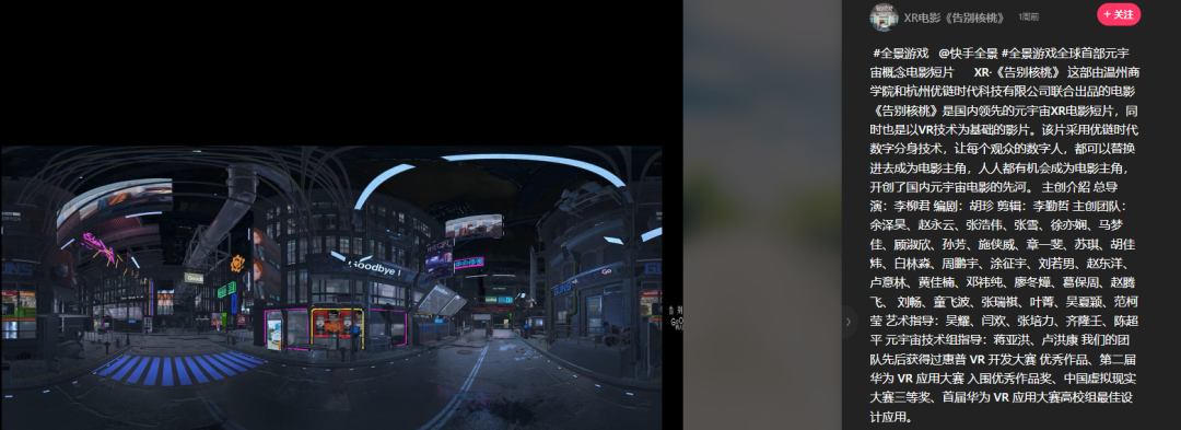 一方面,XR影片会拓展“观看”的边界。除了能用VR设备来看,还能用手机来看,我们也在尝试结合真实的环境来做影像内容,比如实拍温州中心的某个区域,让观众能快速融入到这个场景中,或者是直接线下走到这个场景中去看XR影片。