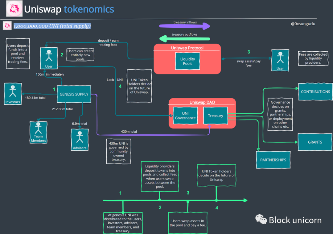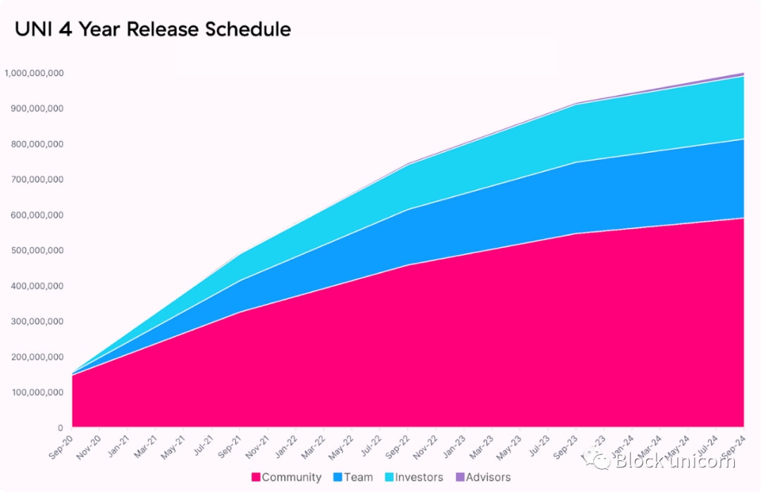21.266%(212,660,000 UNI)给团队成员和未来员工,有4年的归属期