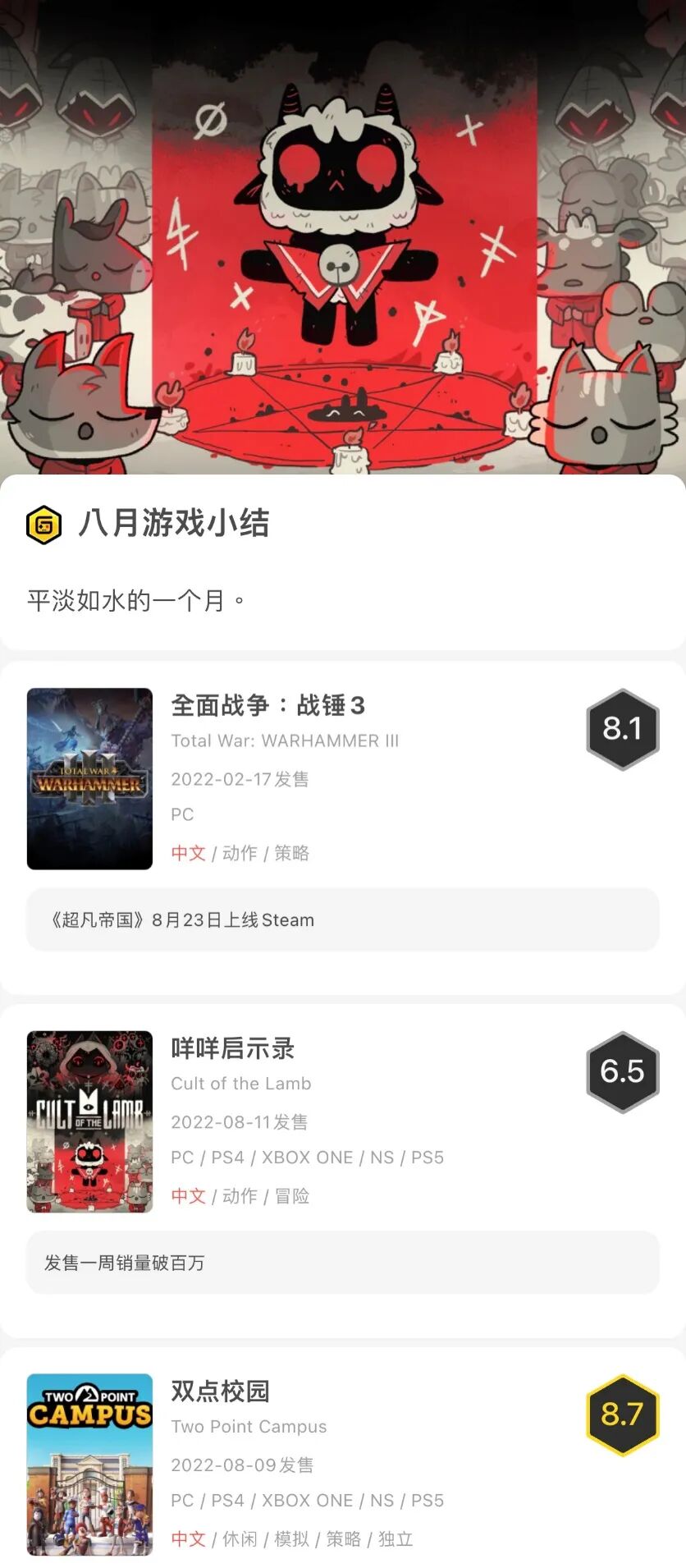 你还玩了什么其他的八月新游吗?我们整理了一份游戏单,包含八月发售、复刻或发布大型更新的游戏,扫描文内二维码或点击文末“阅读原文”即可查看。欢迎大家打分评价,我们将从所有游戏评价中,精选2位社友,各送出一份100港币Steam充值卡。