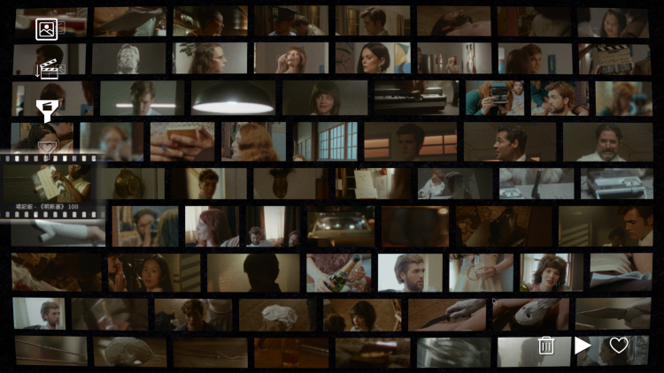 例如,当玩家在第一部电影的片段中点击女主脸庞进行跳转时,跳转的目标可能是女主出演的第二、第三部电影、可能是幕后花絮、可能是私人录像、可能是采访与广告,也可能是纪录片。这些片段之间唯一的共性只是都有同一互动物,没有明显的逻辑关系。