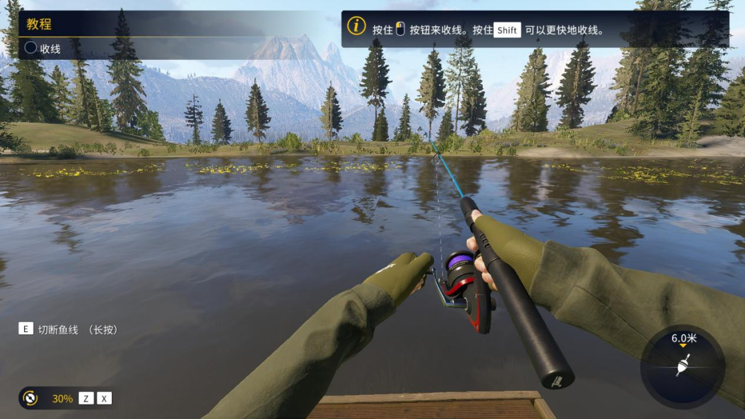 作为一款面向专业领域的游戏,《荒野的召唤:垂钓者》不再像系列前作那样过分硬核,它拥有了更多的操作空间,以及更轻松的操作余韵。即便玩家对游戏的整体操作并不熟练,也可以根据可视化的UI交互来做出正确判断,继而成功收线。