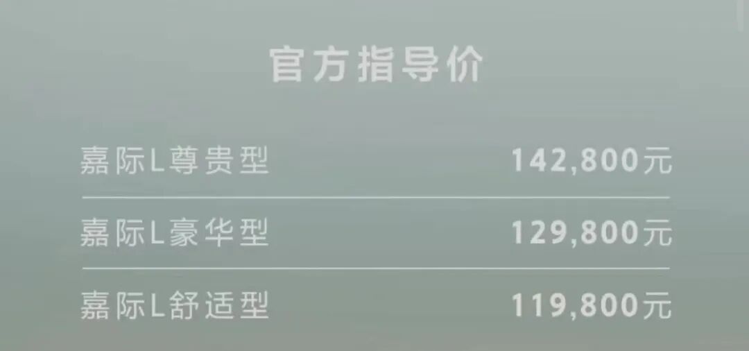 吉利嘉际L正式上市 ,售价11.98万元起