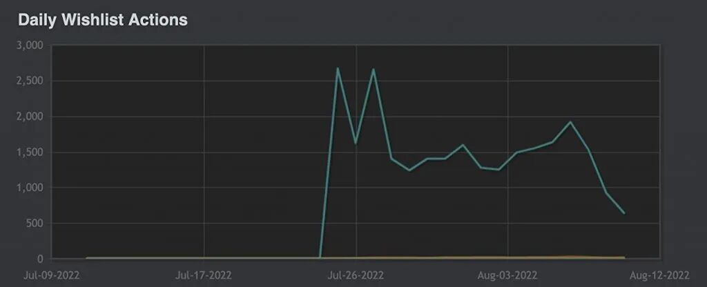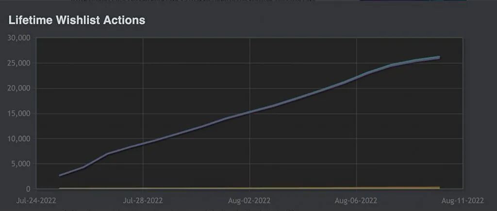 在《猩红谷》的Steam付费页面发布的第一天,我们就获得了1000个愿望单,首周获得2500个。考虑到我们在该游戏方面的记录,以及自该页面发布以来一年半内我们看到的社区增长,我们希望将这些数字翻一番。