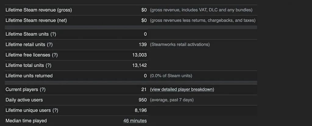 我们在随后的周一发布了demo,这再一次超出了我们的预期。截至8月8日,有1.3万人下载了该demo,其中60%的人玩过,这部分玩家的游戏时间中位数是45分钟,足够他们发现至少一半的demo结局。