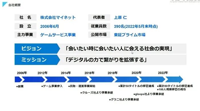 在最近举办的日本最大的游戏开发者大会CEDEC 2022上,Mynet Games社长松本启志介绍了Mynet做游戏接盘生意的始末。