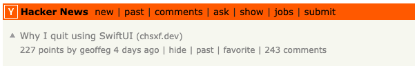 本文的作者 chsxf,是一家独立游戏工作室的首席开发,也是 15 年的苹果用户,他想尝试将 SwiftUI 放到自己的项目中,但是最终失败了。他发表了一篇博客,总结了尝试并放弃 SwiftUI 的过程,这篇文章在 Hacker News 上引发了开发者们的大量讨论: