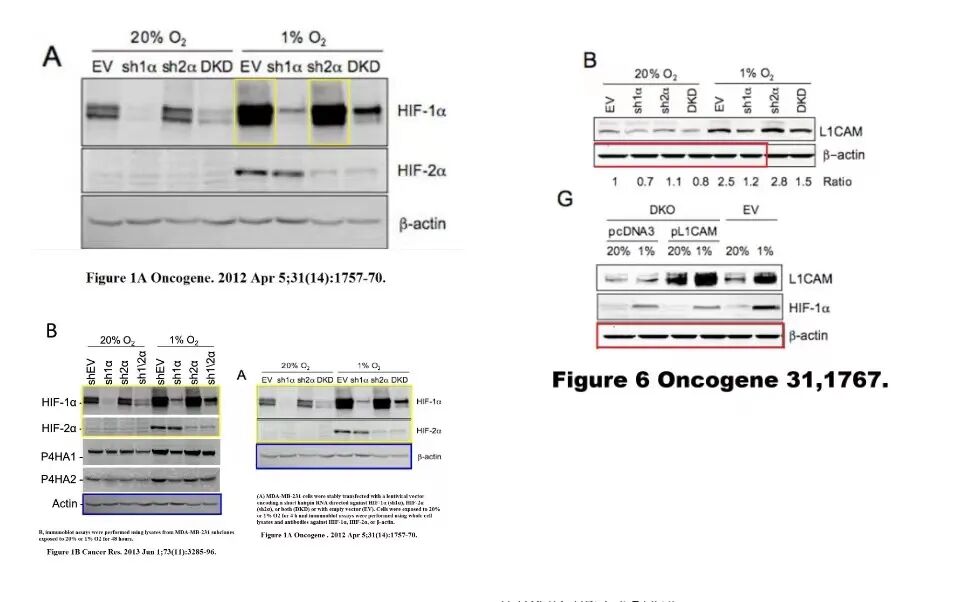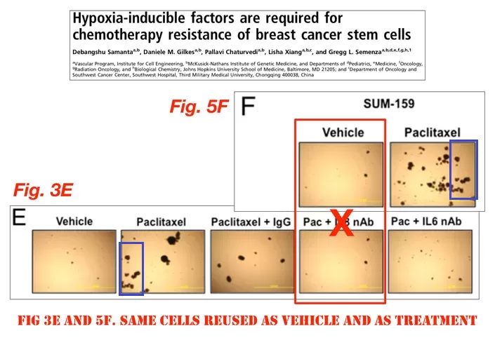 2014年发表的Hypoxia-inducible factors are required for chemotherapy resistance of breast cancer stem cells文章便存在数据重复使用、一图多用的问题。