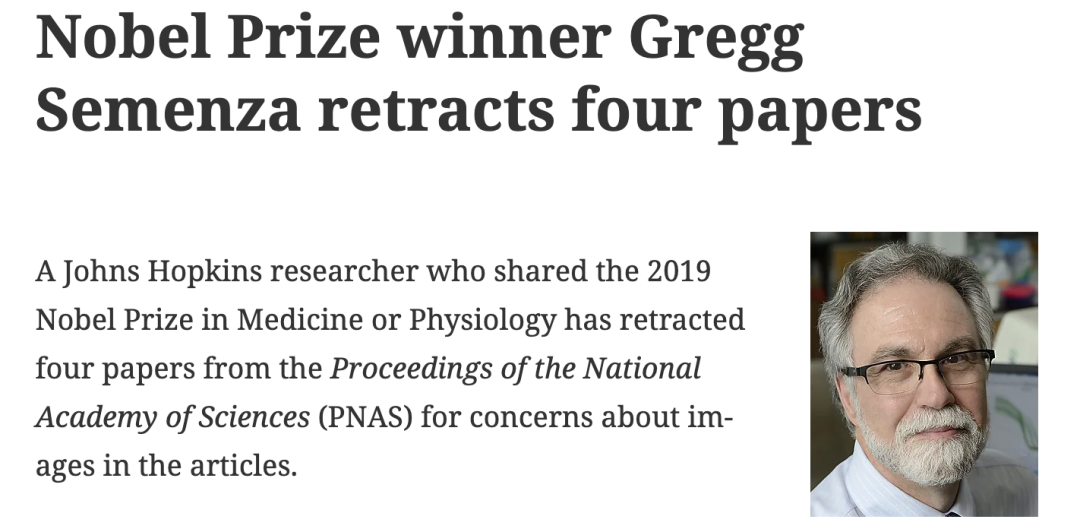 在Semenza获得诺奖之前,就曾有人在学术打假网站PubPeer上指出,他的研究工作存在图像复制等问题。