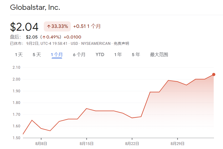 ▲全球星近一个月股价走势图,来源:谷歌财经