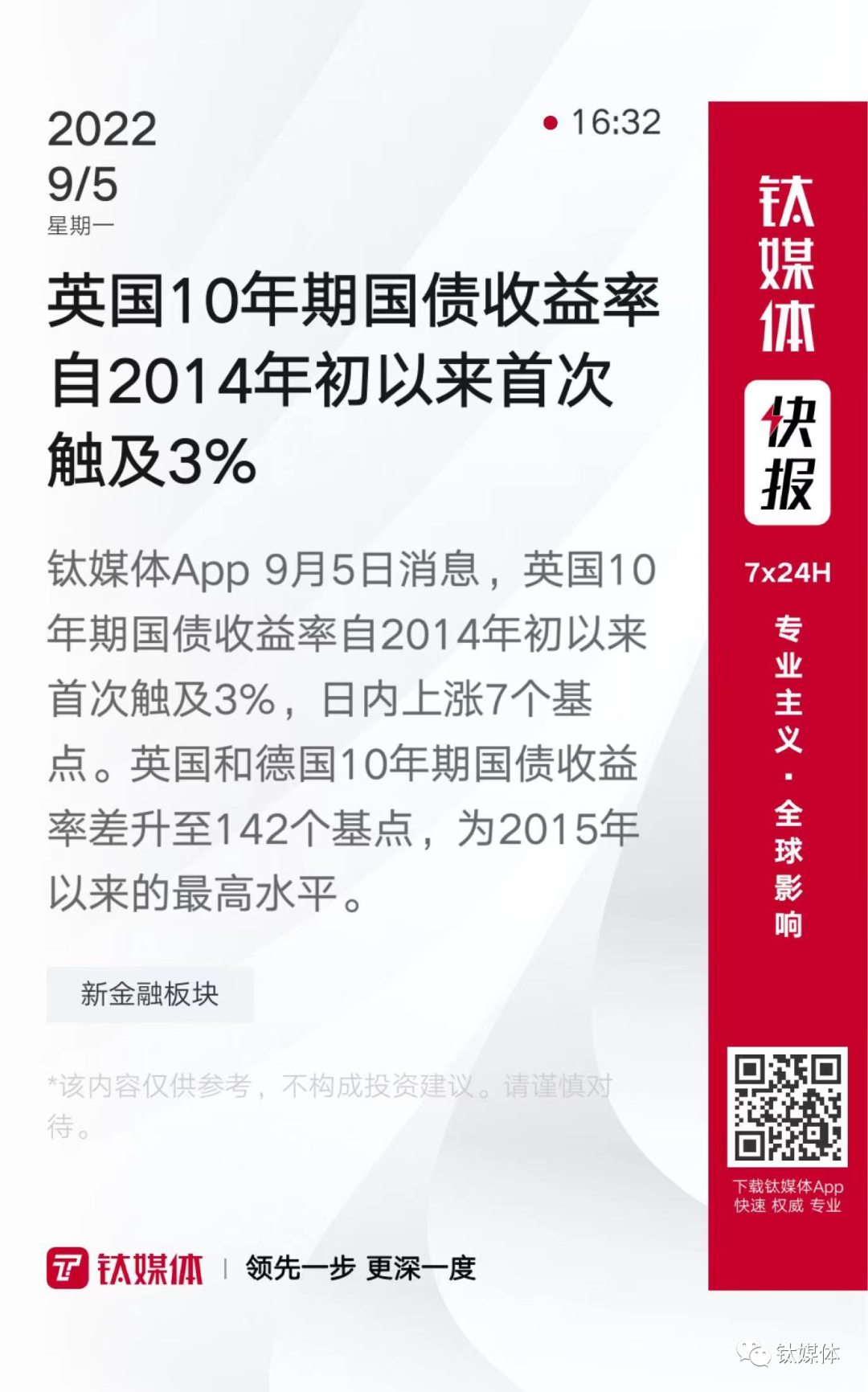 【英国10年期国债收益率自2014年初以来首次触及3%】