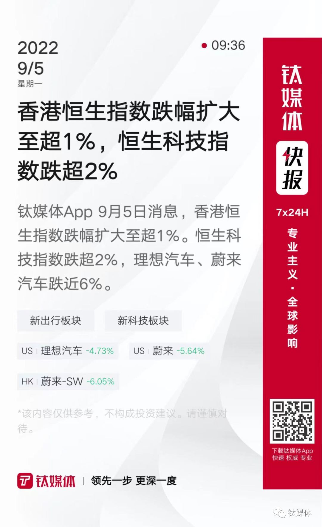 【香港恒生指数跌幅扩大至超1%,恒生科技指数跌超2%】