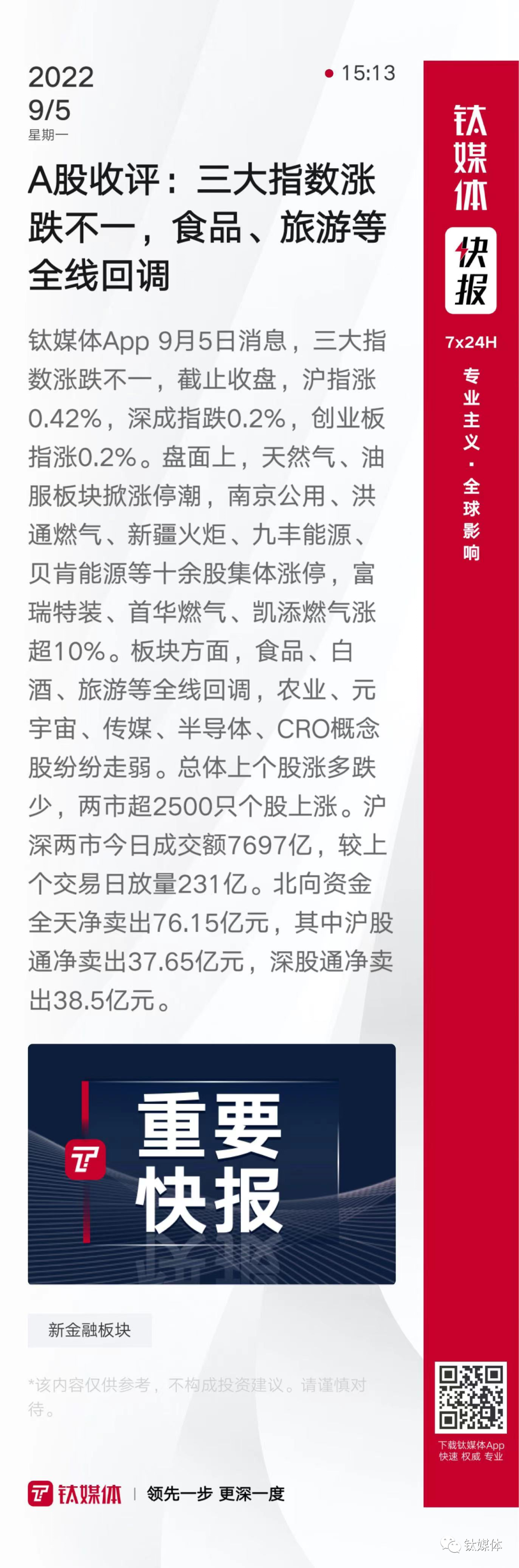 【A股收评:三大指数涨跌不一,食品、旅游等全线回调】