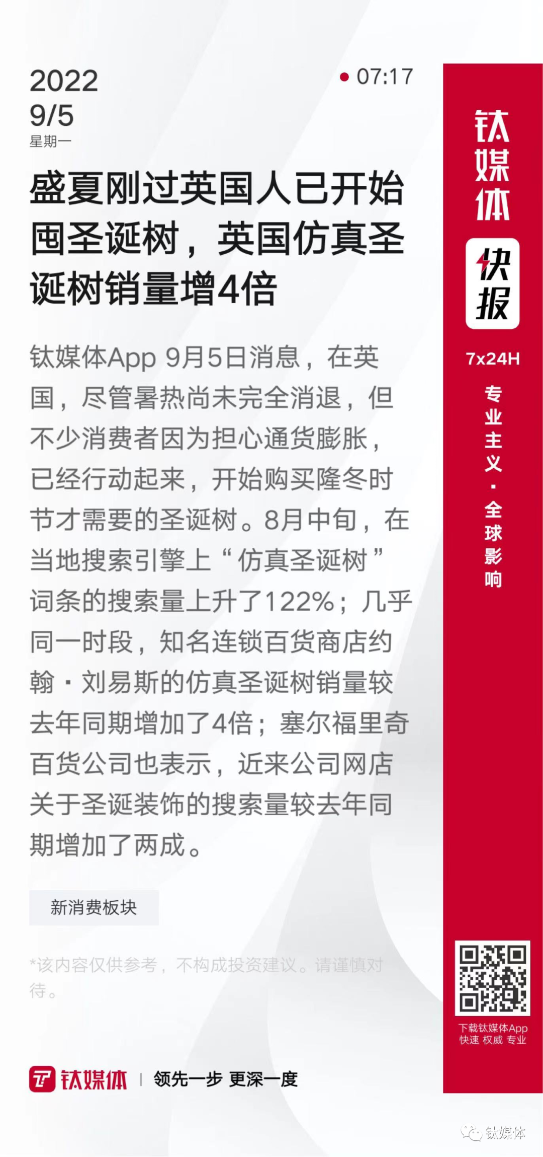 【盛夏刚过英国人已开始囤圣诞树,英国仿真圣诞树销量增4倍】