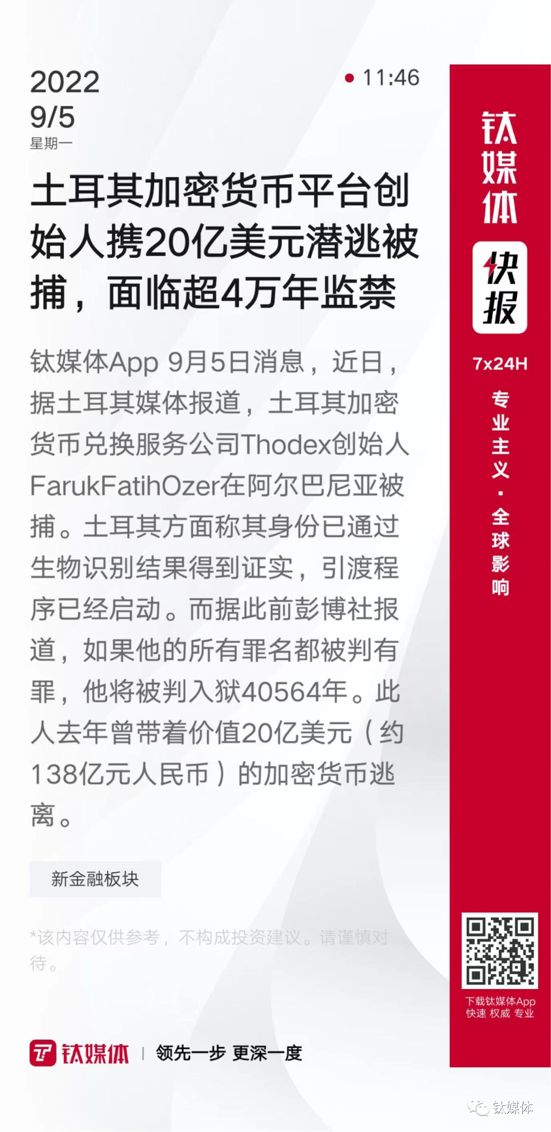【土耳其加密货币平台创始人携20亿美元潜逃被捕,面临超4万年监禁】