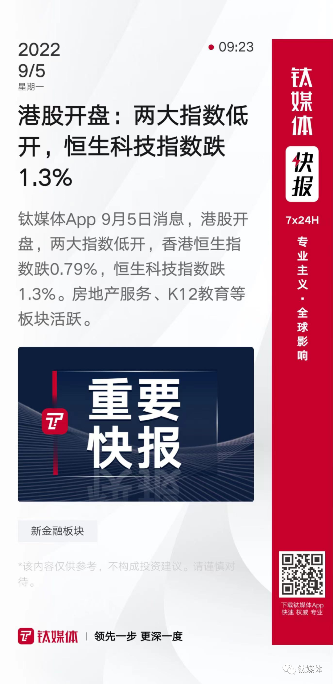 【港股开盘:两大指数低开,恒生科技指数跌1.3%】