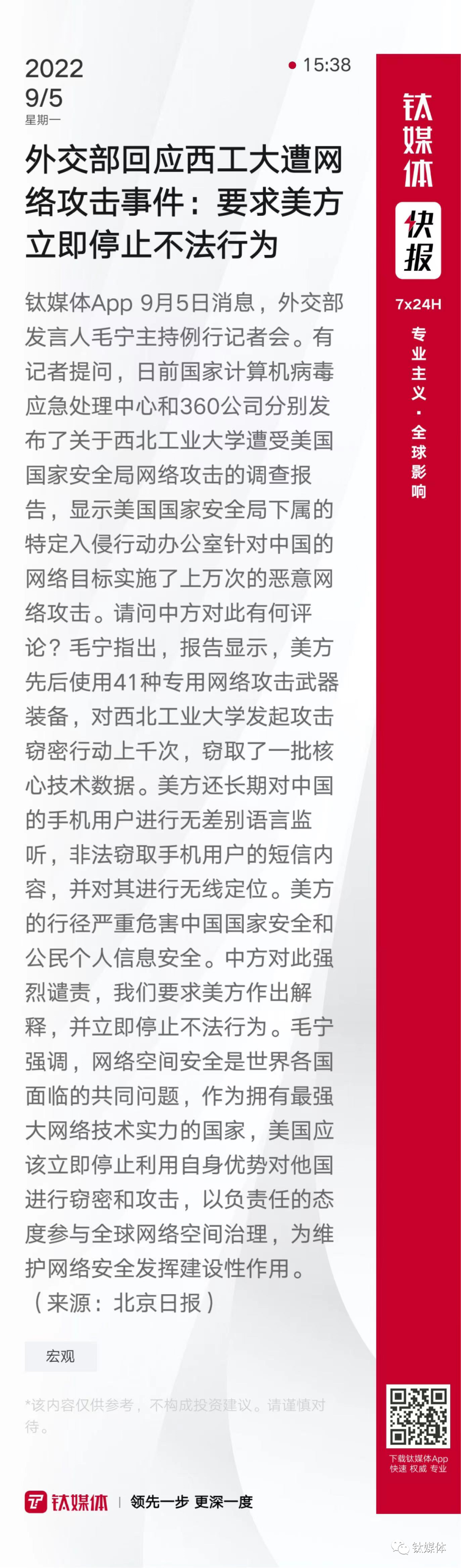 【外交部回应西工大遭网络攻击事件:要求美方立即停止不法行为】