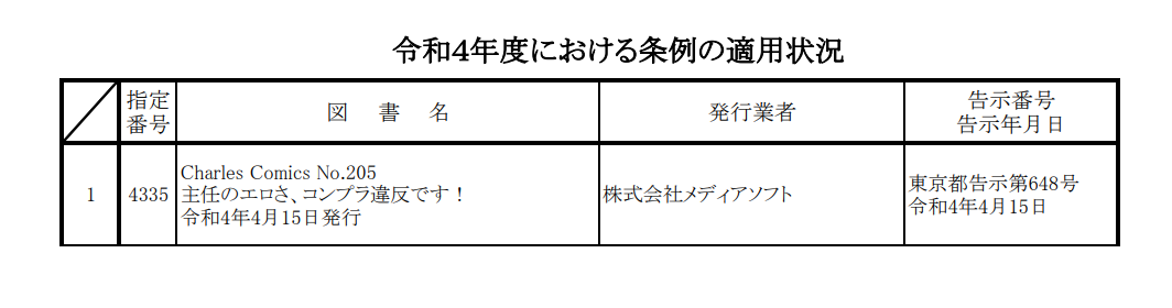 “不健全图书制度”是日本一项存在了近60年的审核机制。每个月,东京都会经由审核人员挑选翻阅市面上发售的上百部图书,并从中以“强烈的性感情刺激内容”“助长残虐性的内容”“劝诱自杀或犯罪的内容”三项为基础标准,对较为出格的作品进行一定的年龄限制。