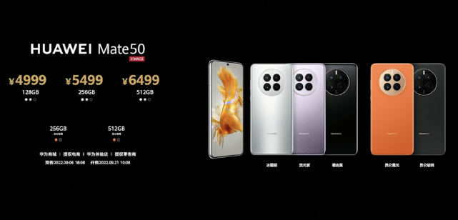 EV,其路面感知响应速度提升了100倍,做到了4毫秒,此外在舒适性、智能化体验以及电池技术方面均有升级,后驱版CLTC续航里程达到了620公里。首先我们来看看时隔两年华为Mate50系列都憋了哪些大招:2、主摄支持10档连续调节可变光圈,拍照景深自由度更高。3、通过聚能泵实现应急模式,1%的电量可待机3小时或通话12分钟。4、屏幕采用“昆仑玻璃”保护,整机耐摔能力提升10倍。在大家比较关注的处理器方面,华为Mate50和华为Mate50 Pro采用的是台积电4nm高通骁龙8+ 4G版芯片,而华为Mate50E采用的是高通骁龙7 4G版芯片。在价格方面,华为Mate50起售价格为4999元,华为Mate50 Pro起售价为6799元,华为Mate50 RS版售价为12999元。此外华为还发布了搭载骁龙7芯片的华为Mate50E,起售价格为3999元。华为Mate50 RS版与Pro版的在硬件配置上的区别主要在于:6400万像素潜望式长焦镜头升级为4800万像素超微距长焦摄像头,并提升了最高存储规格。在今天的发布会上,华为还发布了各类生态新品,包括TWS耳机、智能手表、平板电脑、笔记本电脑等。![]()