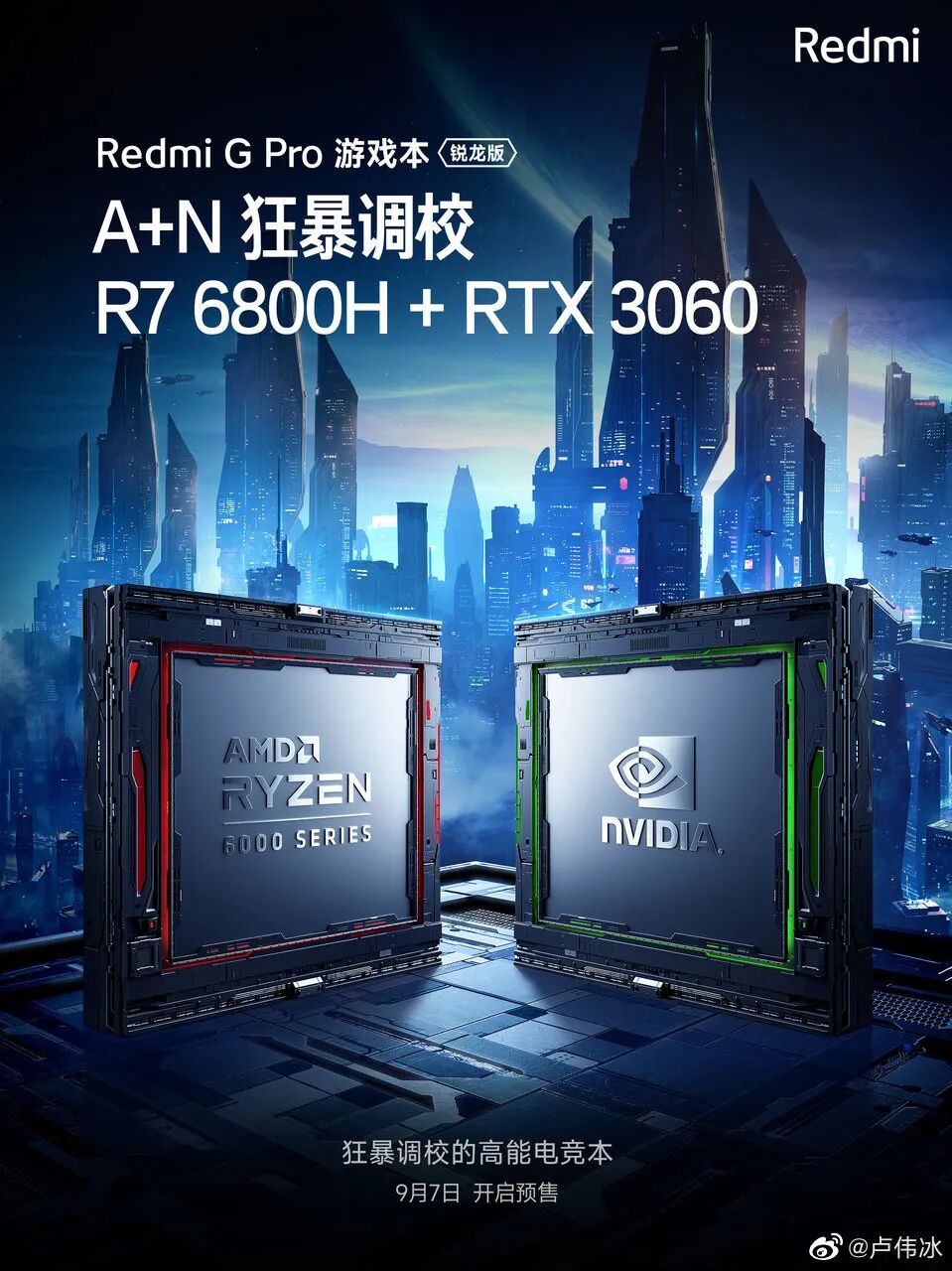 官方预热Redmi G Pro游戏本锐龙版:搭载 2.5K+240Hz 电竞屏