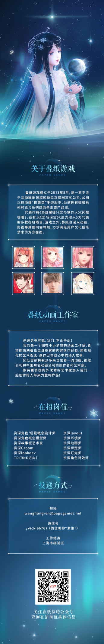 所以,我们也诚心欢迎对动画、对游戏CG制作感兴趣的同学加入我们,一起创作属于叠纸动画的故事。