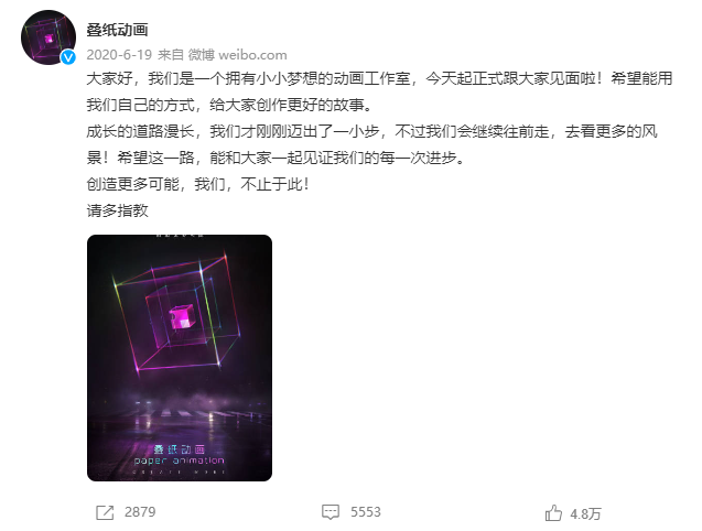 20年6月首次对外正式亮相的叠纸动画