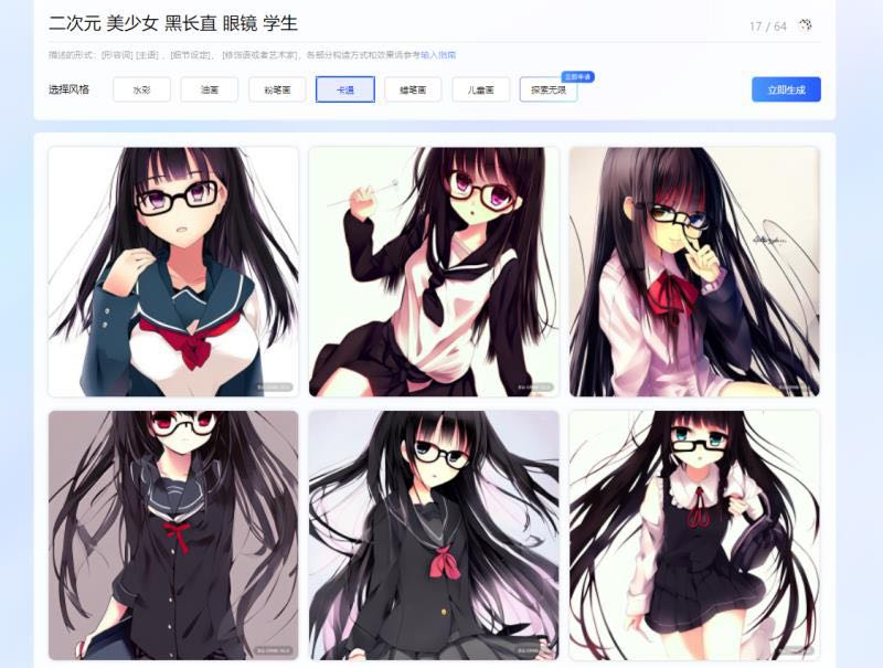 但已经“跑起来”的人工智能,当然不会为谁而停留。在国内,也有最近走红的国产绘画AI文心大模型,能按照文本输出时下受欢迎的典型二次元画风图像。虽然细节欠缺很多,但色彩和画风上大体也不输给很多业余画师——这仅仅只是几秒钟得出的成果。