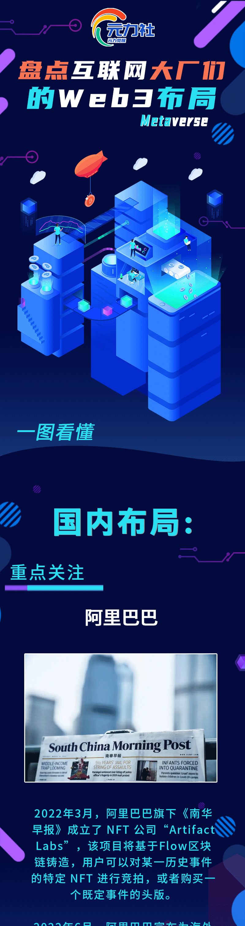 2022年3月,阿里巴巴旗下《南华早报》成立了 NFT 公司“Artifact Labs”,该项目将基于Flow区块链铸造,用户可以对某一历史事件的特定 NFT 进行竞拍,或者购买一个既定事件的头版。
