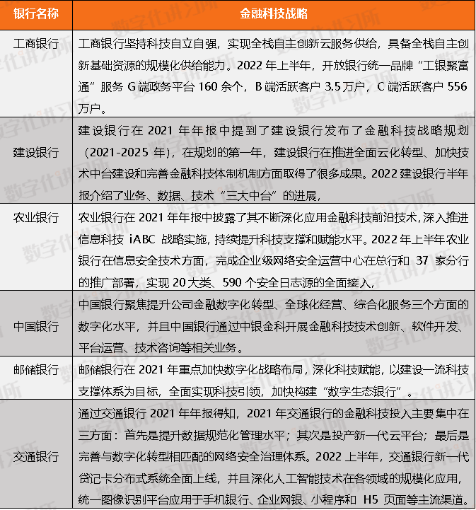 (一)国有银行金融科技战略:覆盖内容全面,建设成果颇多