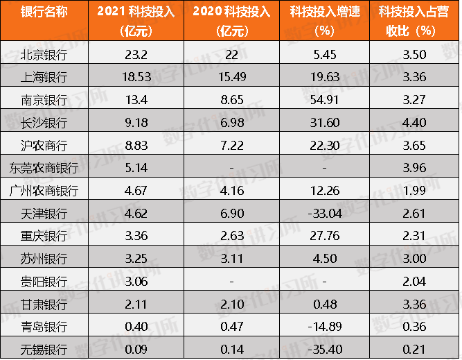 (三)中小银行金融科技投入情况概览:受限于规模,金融科技投入不多