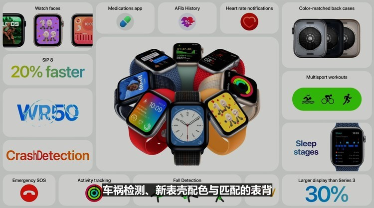 发布会直播开始后,库克首先介绍了新款Apple Watch,并播放了一段官方宣传片,随后发布会便进入新品介绍环节。首先出场的是Apple Watch 系列,iPhone系列作为压轴最后登场。接下来我们将对这三个系列产品分别进行介绍。
