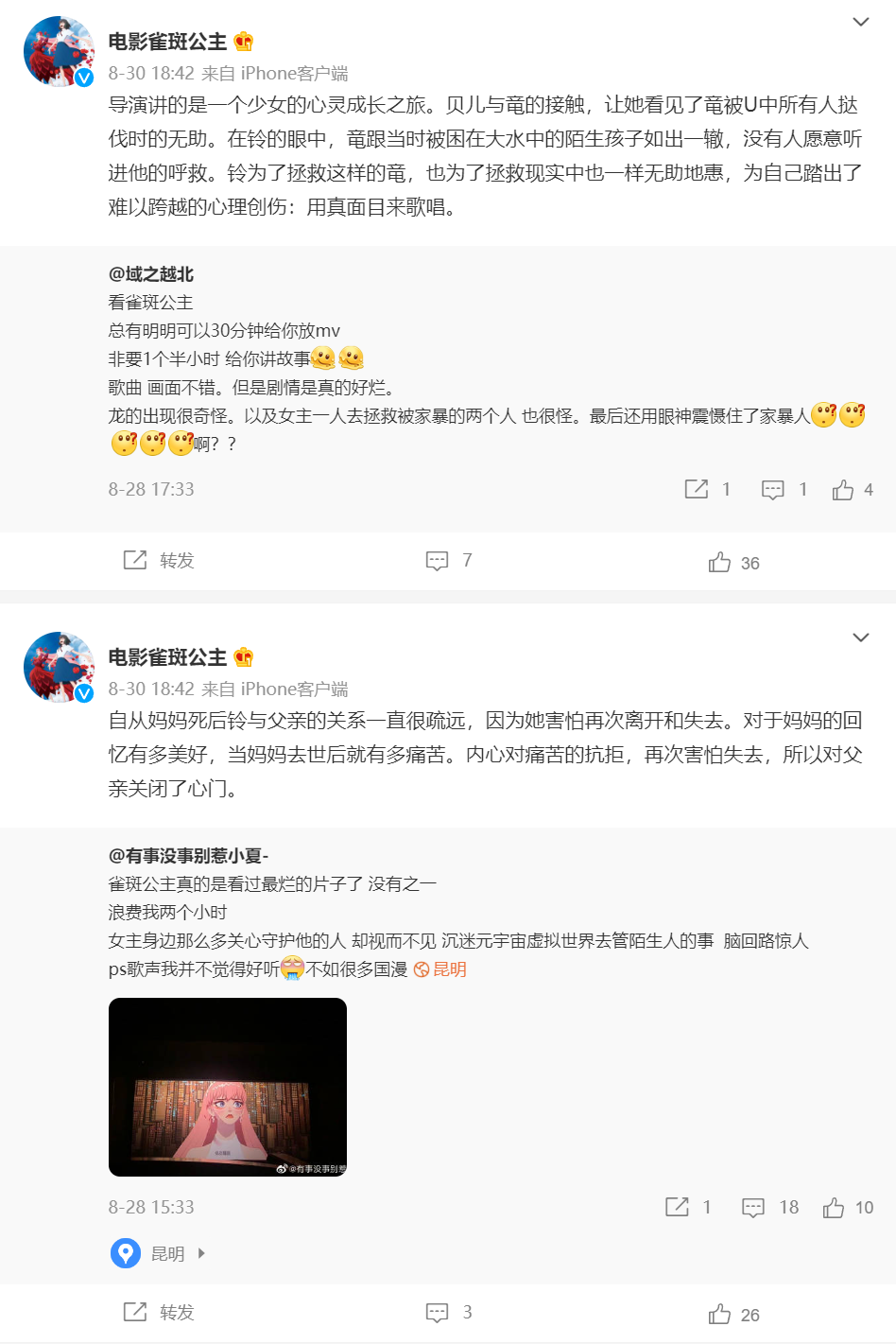 《雀斑公主》的争议当然不止于此,这部影片在国内动画观众之间几乎已经被打上了“烂片”或是“鸡肋”的标签,引进方运营甚至在微博上和吐槽剧情的观众对线。