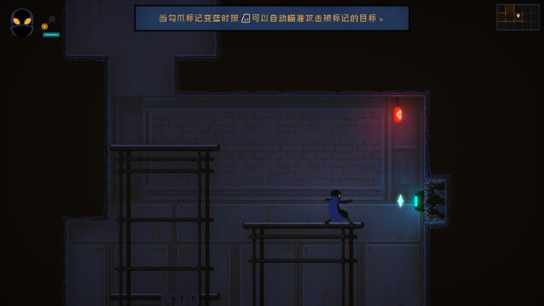 而在游玩本作的过程中,玩家在上蹿下跳探索地图时,还会不经意地发现一些基础能力的延伸技巧,比如向上攻击会将身为抬高,通过冲刺撞墙还能重置这次攻击,从而不断抬高自己的身位来获得“伪二段跳”效果。