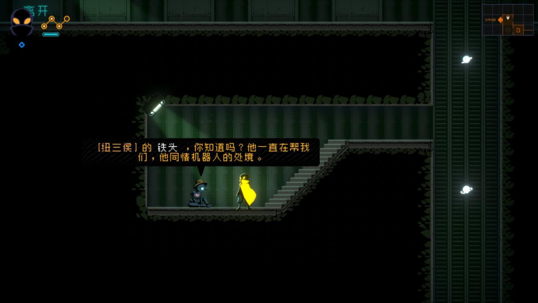 游戏为玩家构建了一个废土但不那么“朋克”的未来世界。两座人类小镇中几乎每一个NPC都有自己对应的任务线,而他们的任务线又全都指向了游戏关卡中的某个收集品或NPC,像铁头的拯救未感染机器人任务,甚至横跨了几乎所有的关卡,有几个机器人所处的位置,还是玩家在没有熟练掌握游戏中的角色能力前根本无法到达的地方。