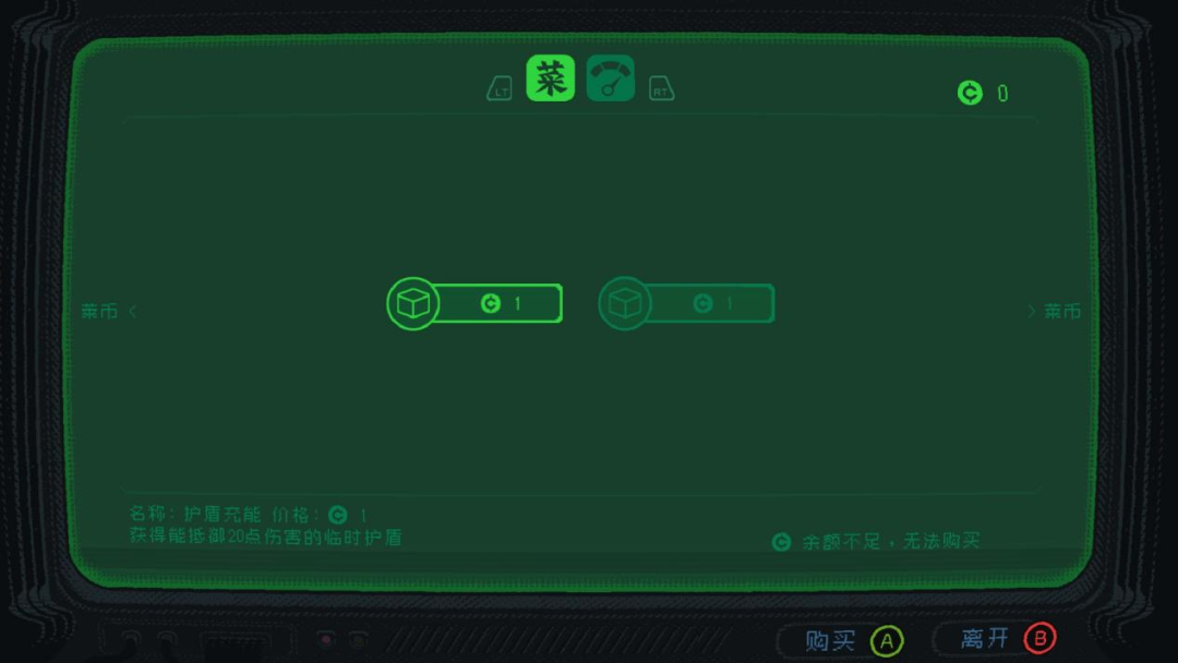 而且,如果实在过不去,游戏中还有个颇为有趣的“菜币”系统,能够帮你解决问题。玩家在本作中死亡后会获得“菜币”,“菜币”能够在游戏中的“菜币”商店购买强化BUFF,买得越多,游戏就越简单——玩家能够借助这个系统,自行微调游戏的难度。