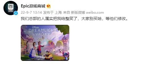 9月7日,Epic游戏商城突然出现一款“售价99999元”的游戏,引得国内玩家吐槽“e宝你又在搞什么?”随后,官方很快在微博发文澄清:“我们总部的人属实把我给整笑了,大家别买,等他们修改。”