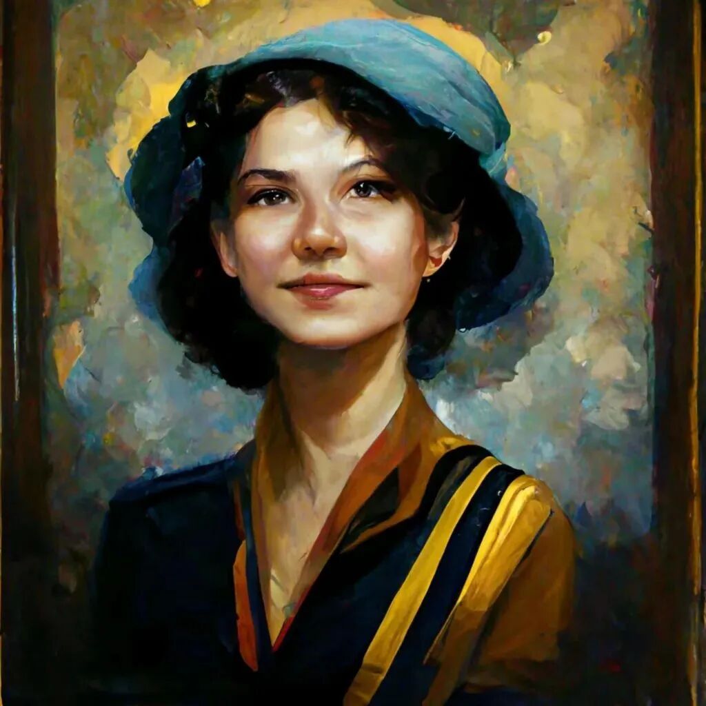 我认为这种风格会有些异想天开、抽象和怪异,它倾向于你可能不会要求的方式混合,以令人惊讶和美丽的方式实现。它倾向于使用大量的蓝色和橘色,有一些喜欢的颜色和面孔,如果你给出一个比较模糊的指令,它会选择自己最喜欢的那个。所以我们不知道为什么会发生这种情况,但它喜欢话一张特别的女人脸,我们不知道她来自12个训练数据集中的哪一个,但人们只是称之为“Miss Journey”。还有一张男人脸,有些方正、很有气派,他也出现过,但还没有名字,但这就像是一个有着自己面孔和偏好颜色的艺术家。